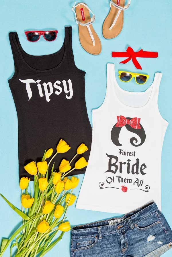 Whimsical Bachelorette Party Shirts | Snow Bride and the Seven Bridesmaids | Fitted Tanks